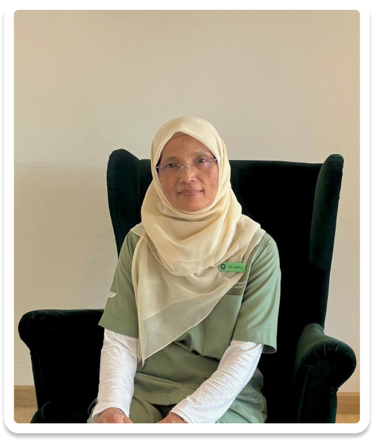 Dr. Nurul Akmar ialah graduan Universiti Malaya dengan pengalaman lebih daripada 39 tahun dalam bidang pergigian. Beliau berkemahiran dalam rawatan pergigian estetik seperti crown, bridge dan veneer, serta merupakan pengasas Klinik Pergigian Nurul Akmar sejak tahun 2019.